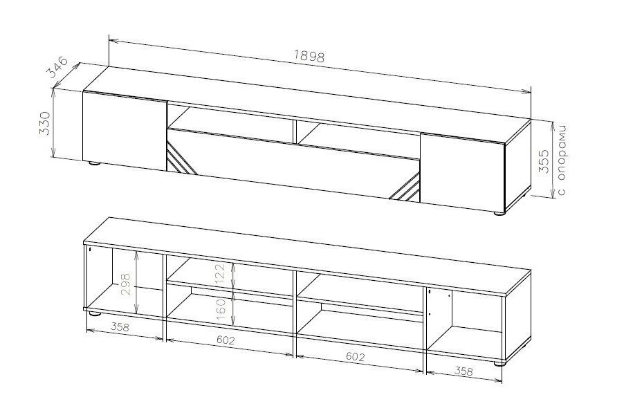 Габариты модуля (ШхВхГ): 2002х330 без опор) / 355 (с опорами)х346 мм