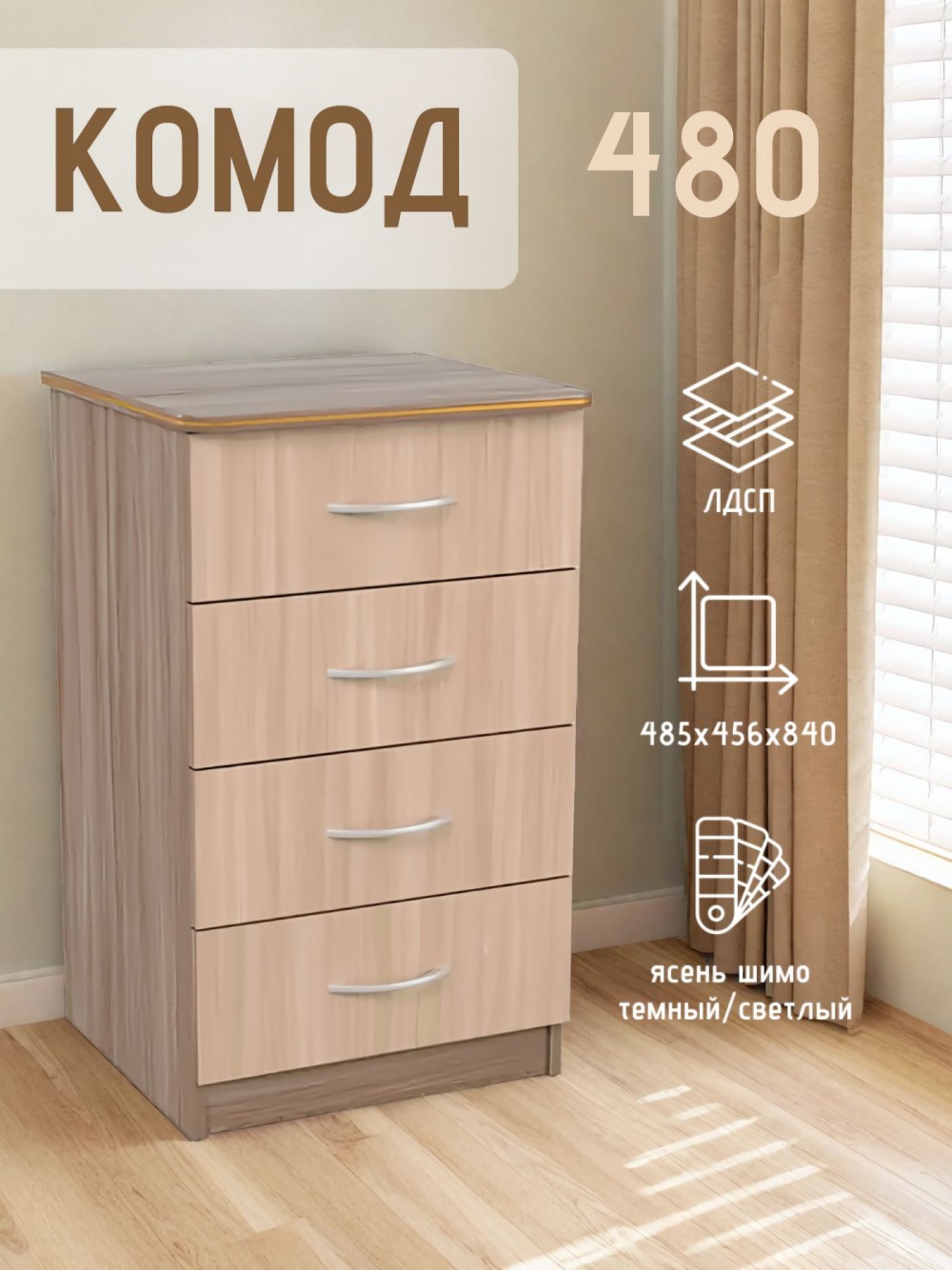 Комод 480 с 4-ящиками (Ясень шимо темный/светлый)