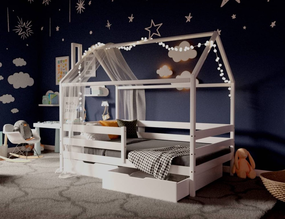 Кровать выполнена из экологичного, цельного массива дерева, а все поверхности кровати ровные и гладкие, безопасные для детей. Для детей кровать — это не только место для сна, но и место для игр и отдыха. Будь то кровать-домик, софа или двухъярусная кровать, которые можно украсить декоративными элементами под вкусы вашего ребенка или дополнить дополнительным местом для хранения.