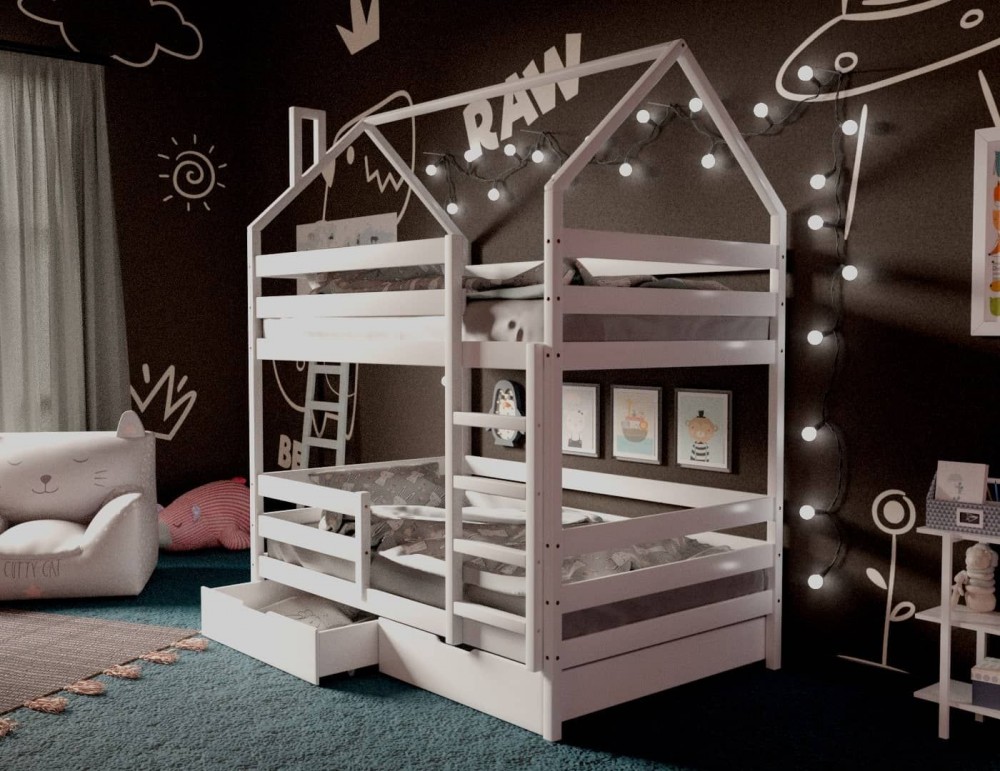 *Стоимость указана за модули: Кровать-домик двухъярусная 80*160 Белый (Ящики в стоимость не входят)