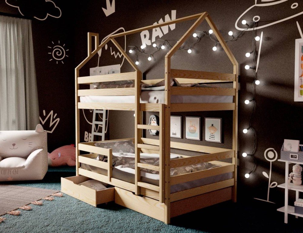 *Стоимость указана за модули: Кровать-домик двухъярусная 80*190 без покраски (Ящики в стоимость не входят)