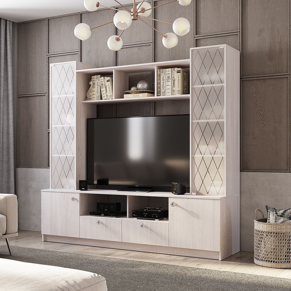 Модульная функциональная гостиная «Зарина», выполненная в классическом стиле, станет приятным акцентом в интерьере вашей квартиры. Спокойная древесная фактура цвета "ясень белый" делают модель изысканной и стильной. Стеклянные створки по бокам просторной зоны под ТВ придают визуальный эффект лёгкости и невесомости, подчеркивая изысканный вкус обладателя гостиной. Благодаря выбранному цвету пыли и грязи на ней совершенно незаметно, а это огромный плюс для домохозяек!
