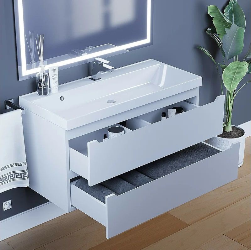 Тумба под раковину Uperwood Tanos 100 см, подвесная, белая матовая